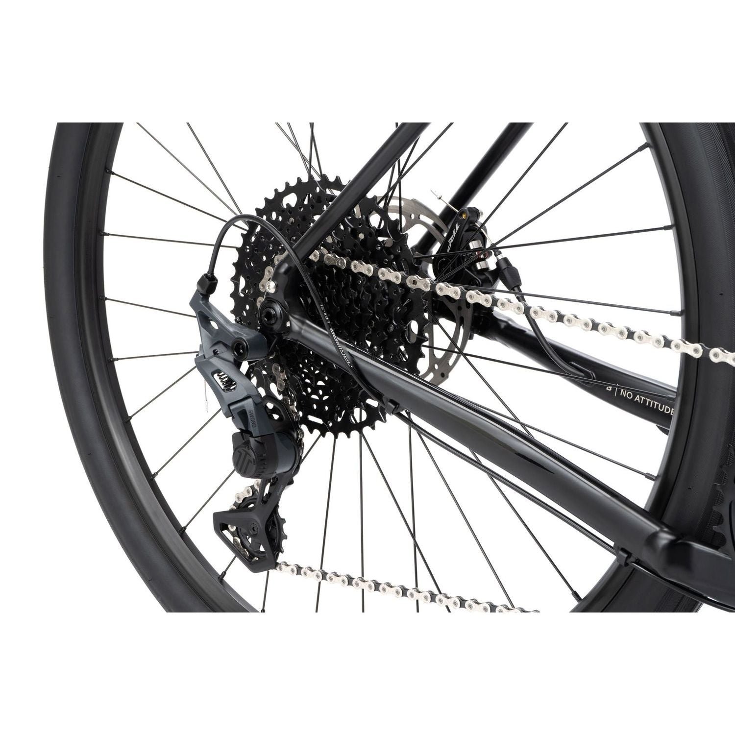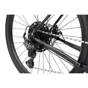 Die 10-fach Microshift Sword Schaltung mit 11–48T Kassette sorgt für alle Gänge, die du für steile Anstiege und schnelle Flachstücke brauchst. Der clutch-gesteuerte Microshift Sword Hinterbau mit austauschbarem Schaltkäfig garantiert präzises, sicheres Schalten, selbst auf rauem Terrain. Ein Bombtrack Lyer Aluminium-Kurbelset mit 40T Narrow-Wide-Kettenblatt sorgt für Langlebigkeit und optimale Kettenführung.