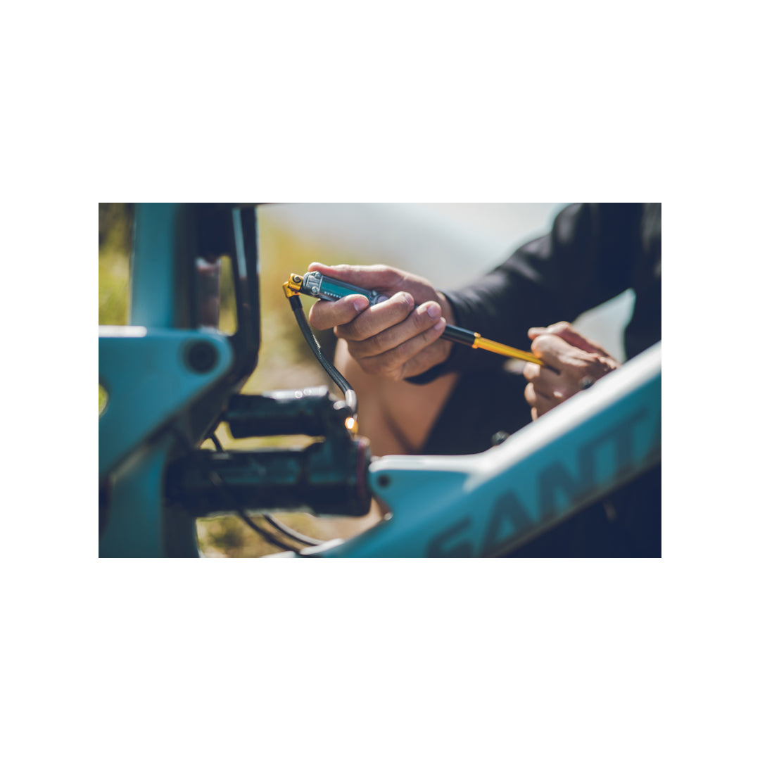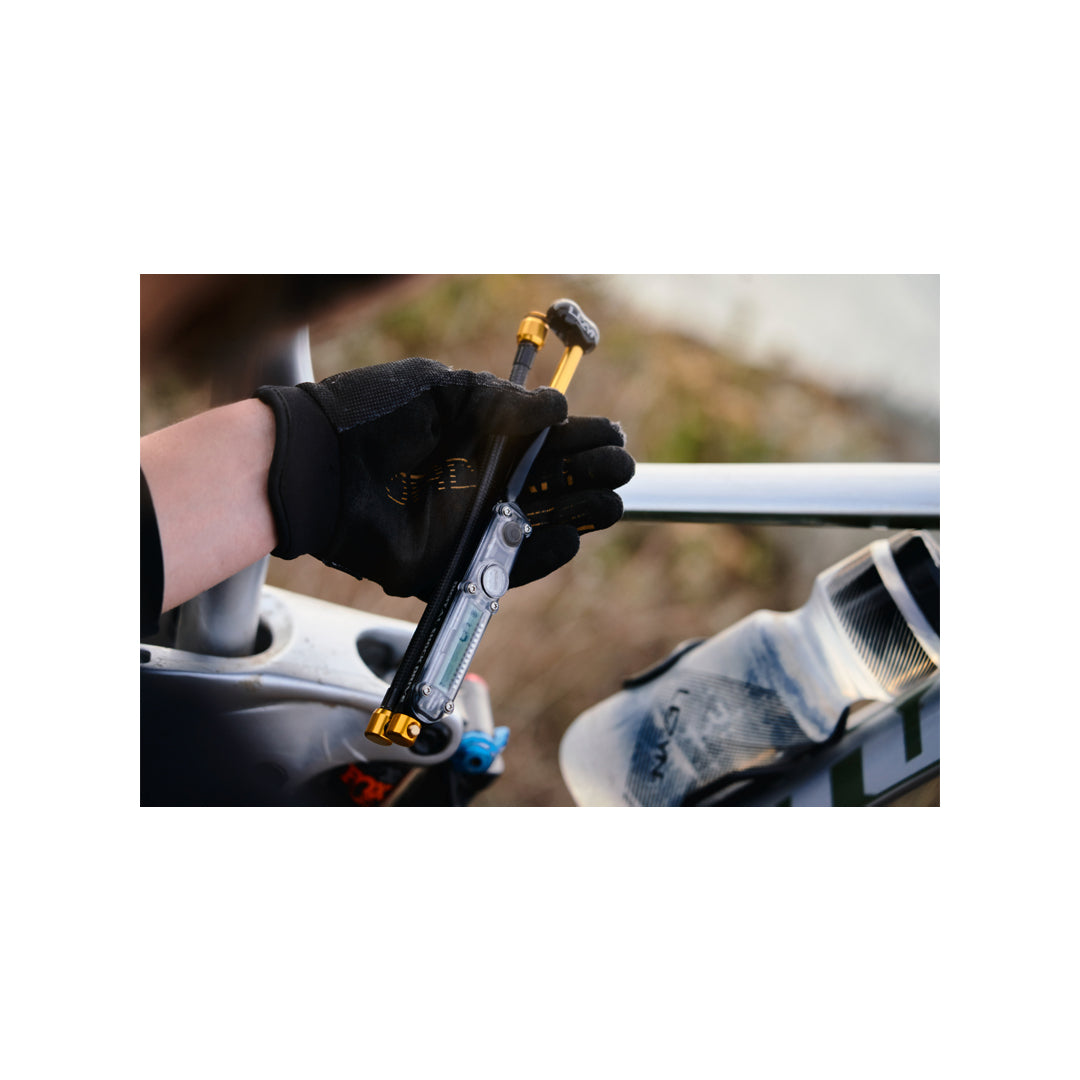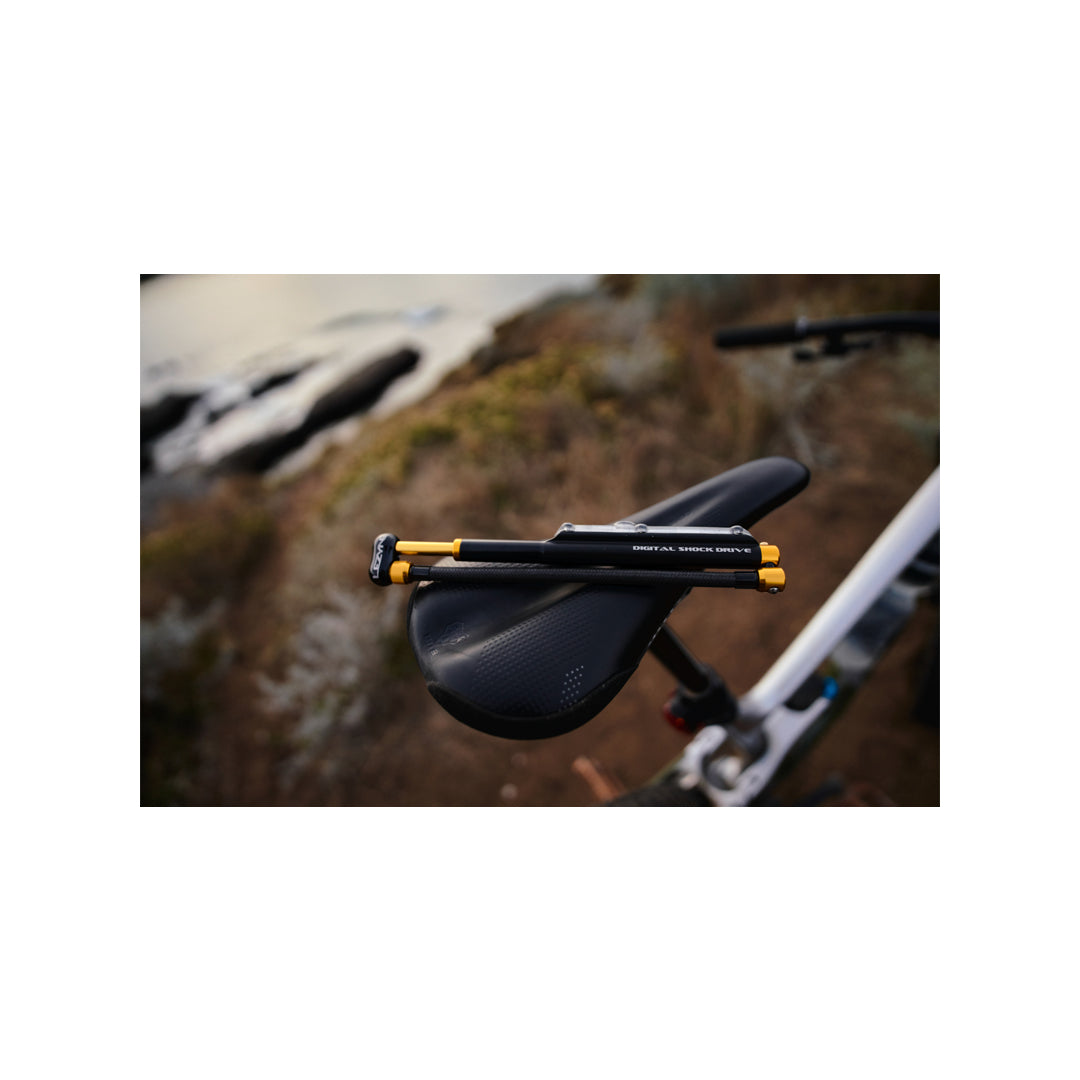 Suchen Sie eine Dämpferpumpe, die alle Anforderungen erfüllt? Dann ist die Digital Shock Drive genau das Richtige für Sie. Sie ist unglaublich kompakt und leicht und besticht durch ihre schlanke Konstruktion aus bearbeitetem Aluminium. Unser flaches digitales Manometer sorgt für unübertroffene Genauigkeit (+/- 1,5 %) bei einem Gewicht, das die Waage nicht sprengt. Sie liefert bis zu 24 bar (350 psi) und verfügt über unser verlustfreies Spannfutter-Design, das sich nach dem Abdichten des Ventilstifts vom Dämpfer löst und so jeglichen Luftverlust verhindert, der die Druckmessung verfälschen könnte. Der clever integrierte Schlauch lässt sich bei Nichtgebrauch bequem im Griff verstauen.