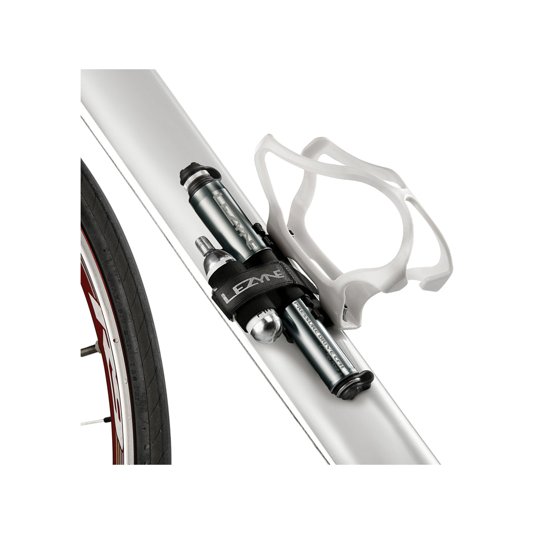 Das Kit enthält eine Pumpe mit integriertem CFH-Schlauch, eine 16-g-Kartusche mit isolierter Neoprenhülle und CFH-Montagezubehör. Dank der anpassbaren Konfiguration lässt sich die Pumpe bequem am Rahmen befestigen oder in die Trikottasche stecken. Nur für CO2-Gewindepumpen geeignet.