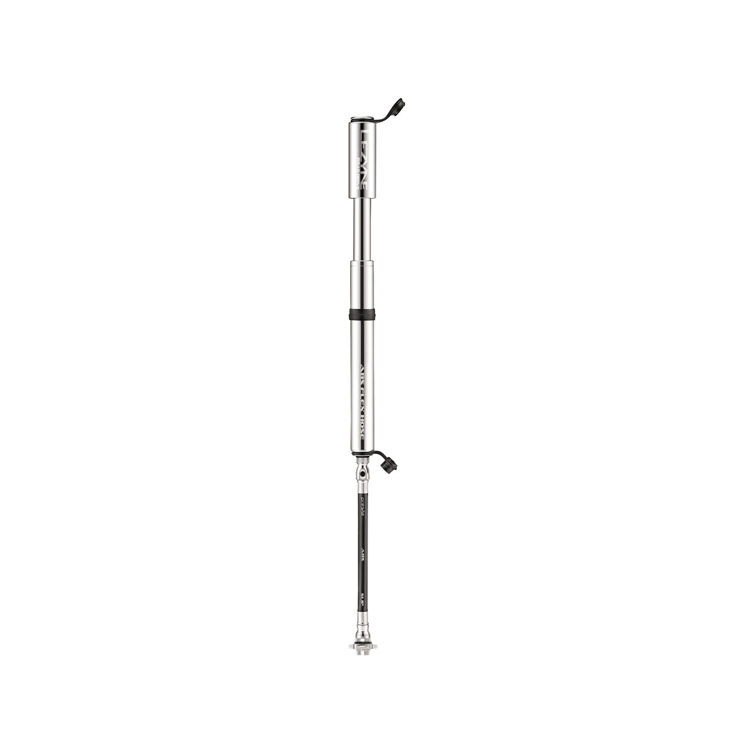 Der Lieferumfang umfasst einen zweiseitigen ABS-Flexschlauch (nur Presta-Version). Eine Seite dient als Steckverbindung, die andere Seite wird für eine sichere Verbindung aufgeschraubt. Der Schlauch verfügt außerdem über ein integriertes Ventileinsatzwerkzeug.