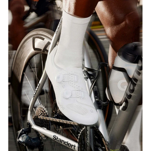 Für präzisen Sitz sorgt ein paralleles Dual-Dial-Verschlusssystem mit verbesserten Führungselementen. Es umschließt den Fuß sicher und gleichmäßig und steigert die Stabilität – ganz ohne die Einschränkungen einer klassischen Zunge. Eine steife Carbonsohle maximiert die Kraftübertragung, während innovativ geformte Einlegesohlen mit unterschiedlichen Fußgewölbeunterstützungen durchgehenden Komfort bieten – vom Indoor-Training bis zum anspruchsvollen Straßenrennen.