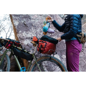 Der Swift Zeitgeist Pack ist ein echter Klassiker im Bikepacking und überzeugt durch seine Vielseitigkeit, Robustheit und sein ikonisches Design. Mit einem großzügigen Volumen von 12 Litern eignet sich die Tasche perfekt für Gravel-Abenteuer, mehrtägige Radreisen, tägliches Pendeln oder sogar für den schnellen Einkauf. Dank flexibler Befestigungspunkte lässt sich der Zeitgeist Pack sowohl am Lenker als auch unter dem Sattel montieren. Robustes Innenfutter, ein stabilisierender HDPE-Einsatz und ein interner Kompressionsriemen sorgen dafür, dass Ihre Ausrüstung stets sicher verstaut bleibt. Die wetterfeste Klappe schützt zuverlässig vor Wind und Regen, während praktische Daisy Chains und Seitentaschen zusätzliche Organisation und Erweiterungsmöglichkeiten bieten.